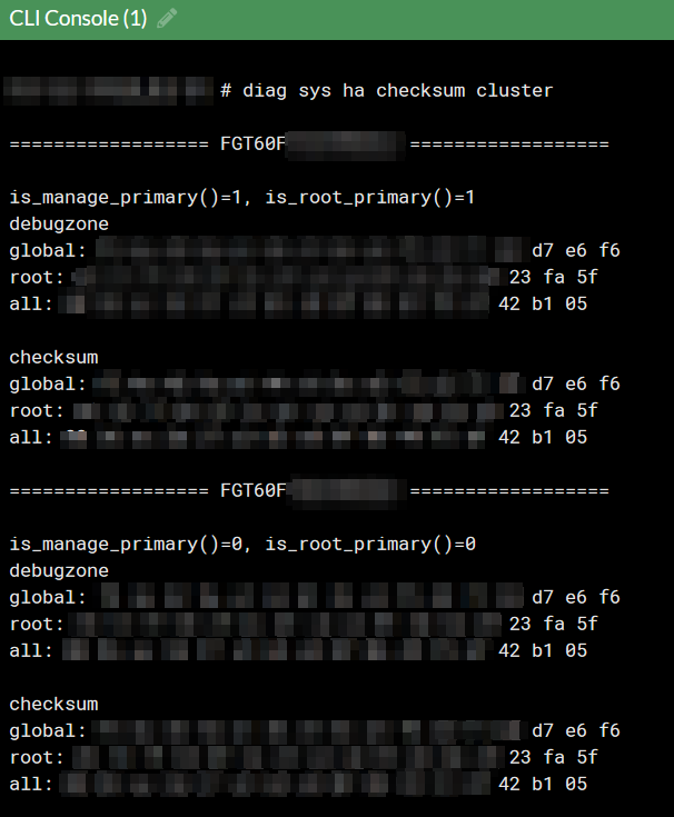 - Verificar el estado del HA: Luego de ejecutar el comando, puedes usar el siguiente comando para revisar si los checksums coinciden entre los miembros del clúster: